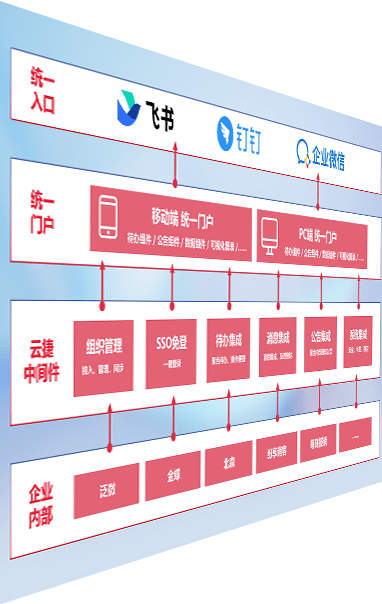 对协作平台提供支持服务,,,,支持企业应用与协作平台对接,,,包含组织同步、、、消息集成、、待办集成等。。支持目前主流的协作平台:钉钉、、、、企微和飞书。。